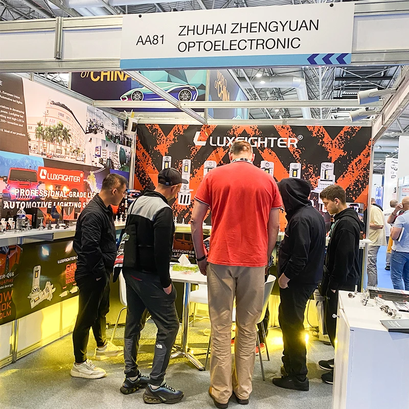 Tijdens de tentoonstelling presenteerde luxfighter niet alleen de bestverkochte Q66 LED-koplampserie, maar ook een reeks hoogwaardige autoverlichtingsproducten, waaronder LED-koplampen, mistlampen en professionele verlichtingsmodules bij weinig licht. Met hun uitzonderlijke kwaliteit, geavanceerd optisch ontwerp en naleving van internationale certificeringsnormen trokken deze producten aanzienlijke aandacht van Europese kopers en industriële partners.